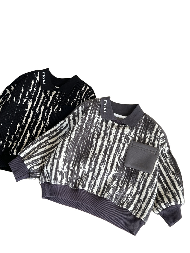 水墨印花秋冬加厚儿童卫衣柔软2024秋冬新款男童套头针织衫潮上衣