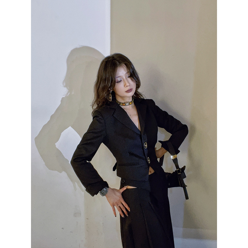 设计师女装 羊毛粗呢质满满海军领收身箱包纽扣短西服外套
