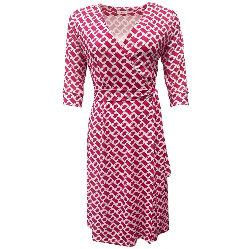 2023夏季新款裹身裙v领粉色锁链明星同款气质修身一片式连衣裙