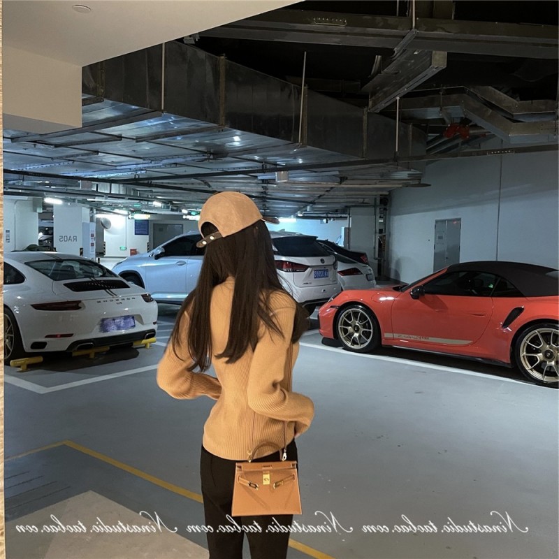 NINASTUDIO 气质内搭 焦糖色 金属扣针织衫