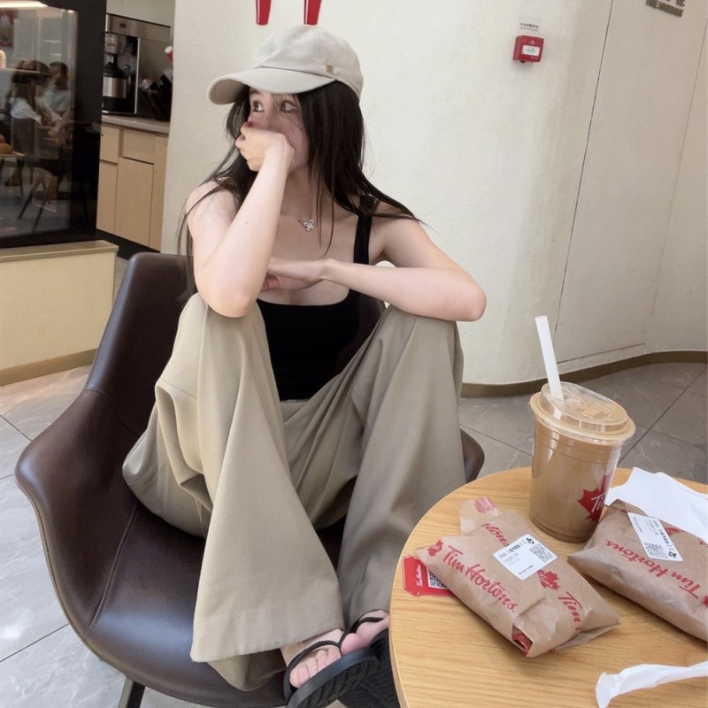 NINASTUDIO 穿上不想脱下 定染绿卡其 显腰阔腿长裤