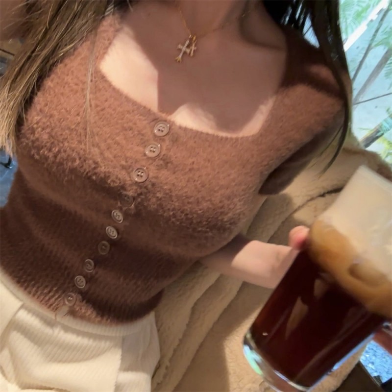(11/10 20:00) 【实用派内搭】 方领毛毛针织短袖 2色