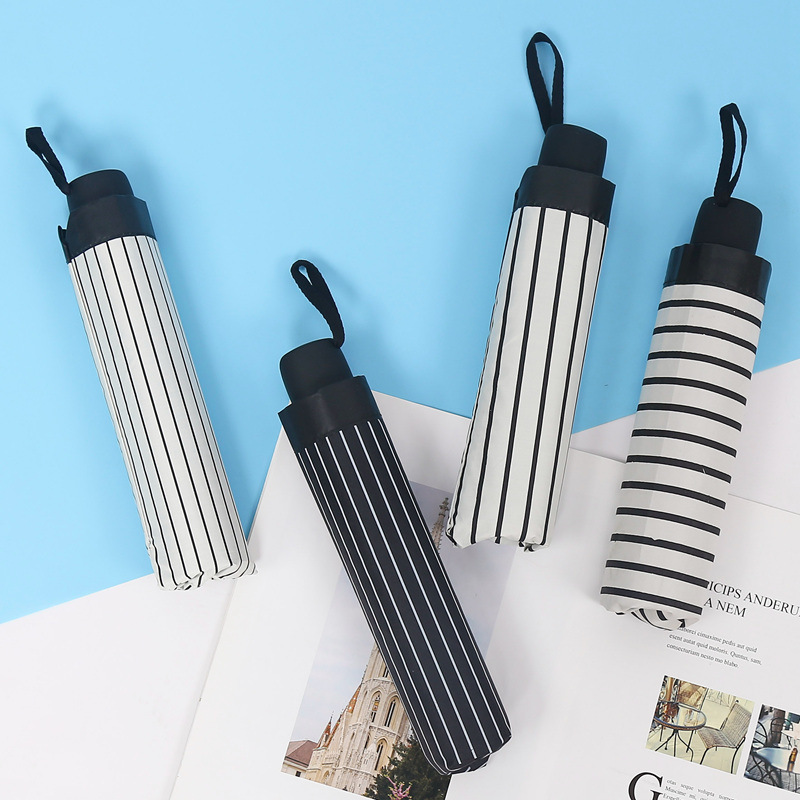 晴雨伞 包邮 条纹系列黑胶防紫外线创意三折叠小清新遮阳伞广告伞