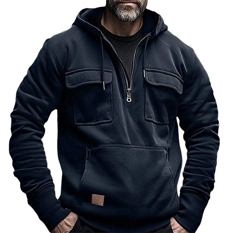 外贸跨境男士青年休闲工装欧美卫衣外套男贴皮复古纯色卫衣有实拍