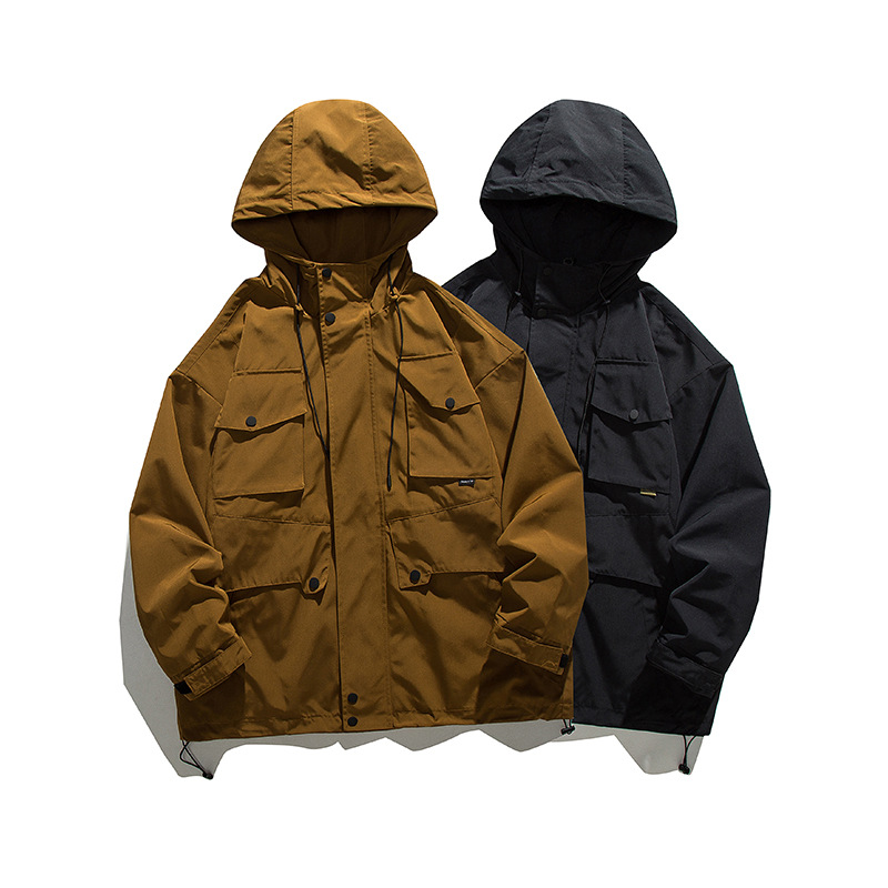 儒孟潮牌机能工装夹克男士宽松户外山系冲锋衣连帽外套防水露营