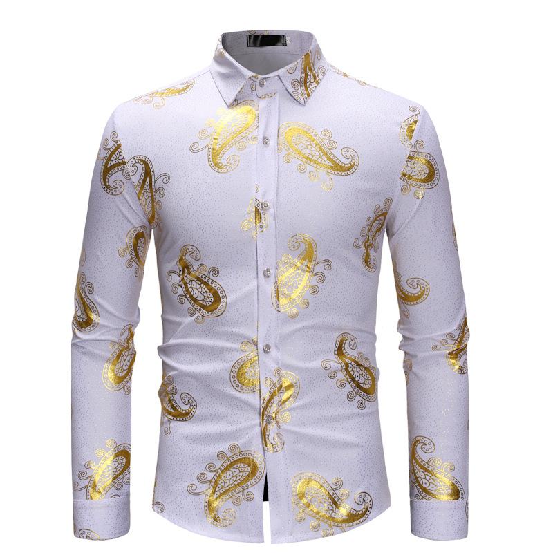 新款商务大码 外贸 欧码 男士休闲 烫金印花长袖衬衫 CS58