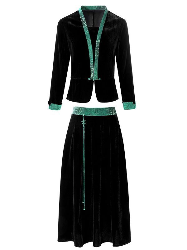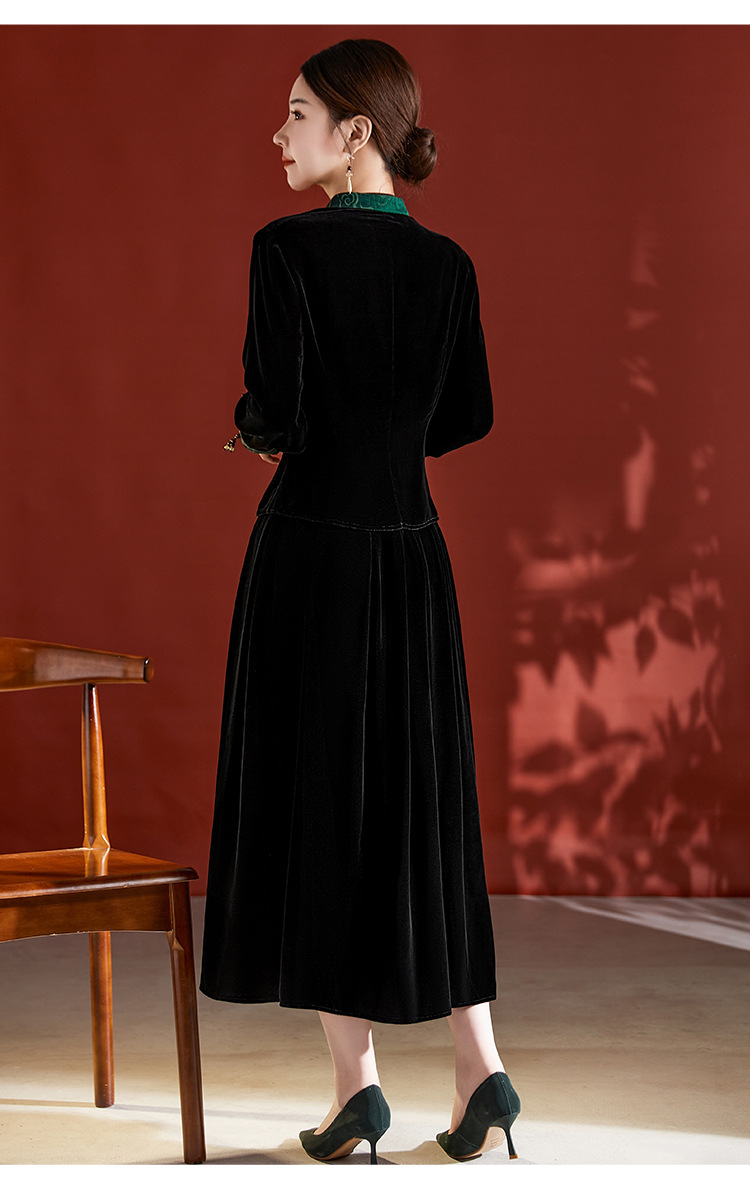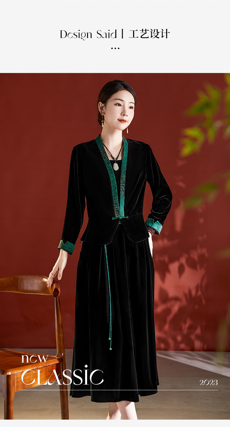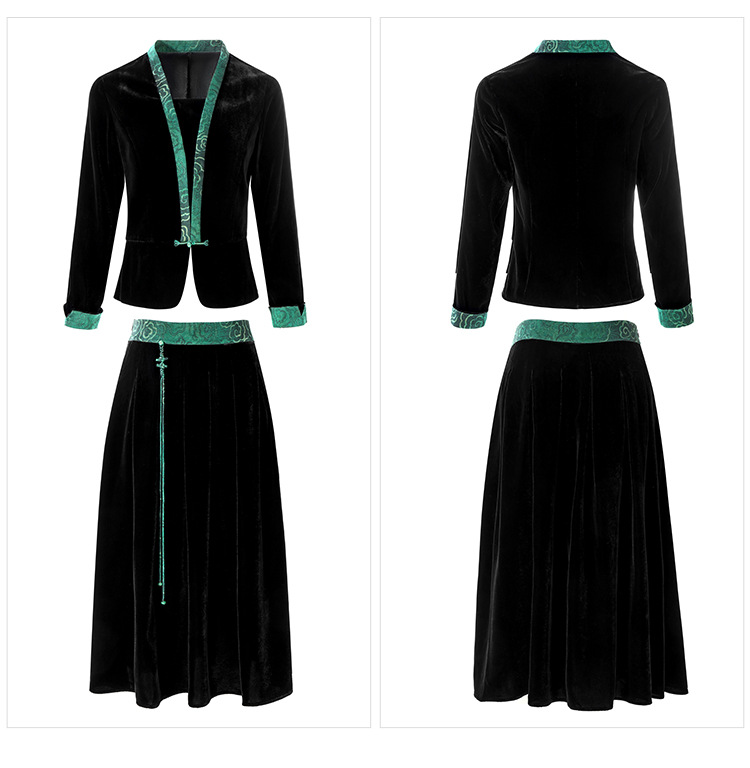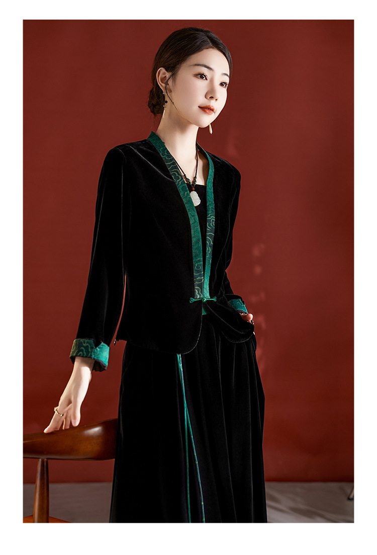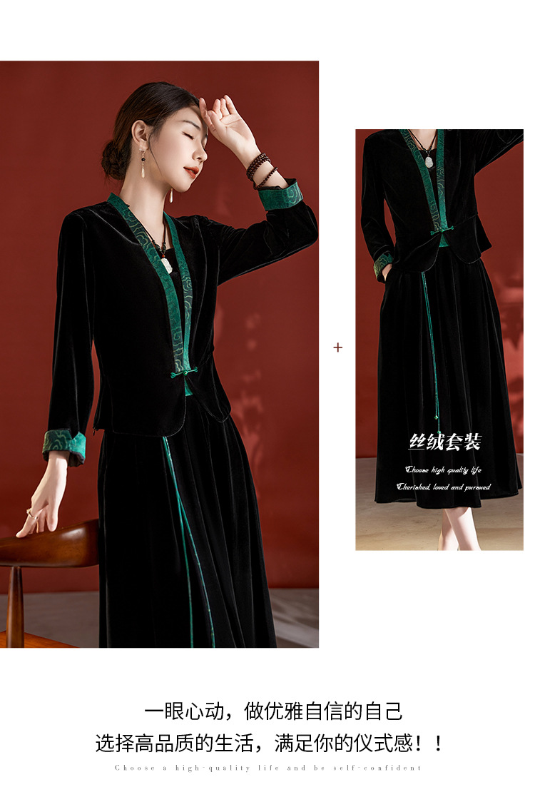 桑蚕丝真丝绒套装早秋新款大码高贵复古阔太太长袖桑蚕丝半身裙