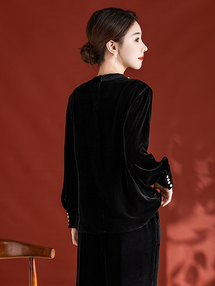真丝丝绒衬衣女2023新款秋季轻奢钉珠长袖优雅洋气桑蚕丝妈妈装