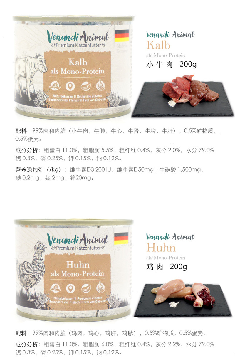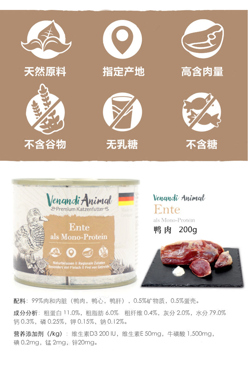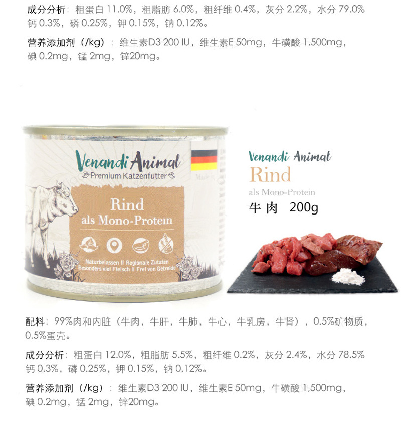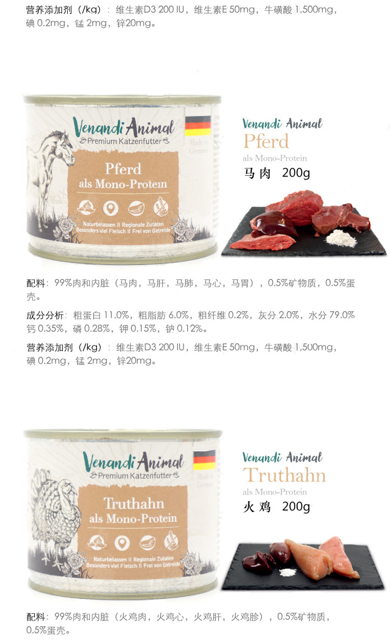 【尼珂宠物】德国venandii蔚安迪主食猫罐头火鸡牛肉马肉一件代发