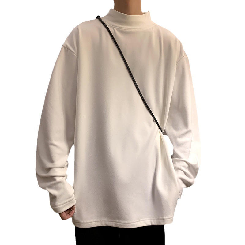 跨境外贸新款男士T恤纯色简约内搭半高领德绒保暖T恤打底衫男
