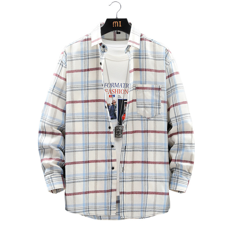 2021新款男士格子衬衫港风潮流时尚宽松翻领青少年学生休闲衬衣男