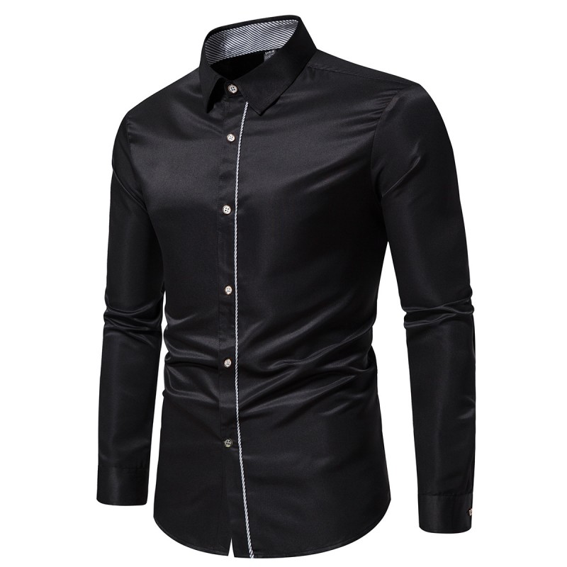 2023外贸新款男士休闲衬衫时尚翻领休闲修身撞色拼接衬衣男