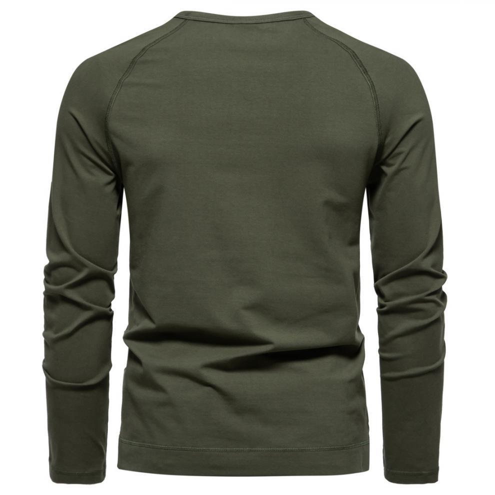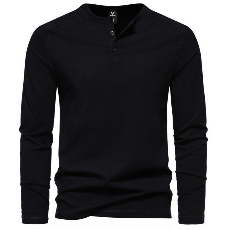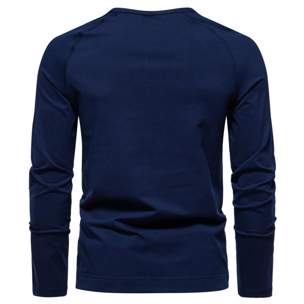 220克棉T恤男 跨境外贸新款男士亨利领长袖T恤休闲纯色T恤打底衫