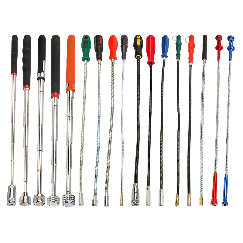 磁力吸棒带LED照明灯弯曲四爪抓取捡拾器汽修伸缩磁铁吸螺丝工具
