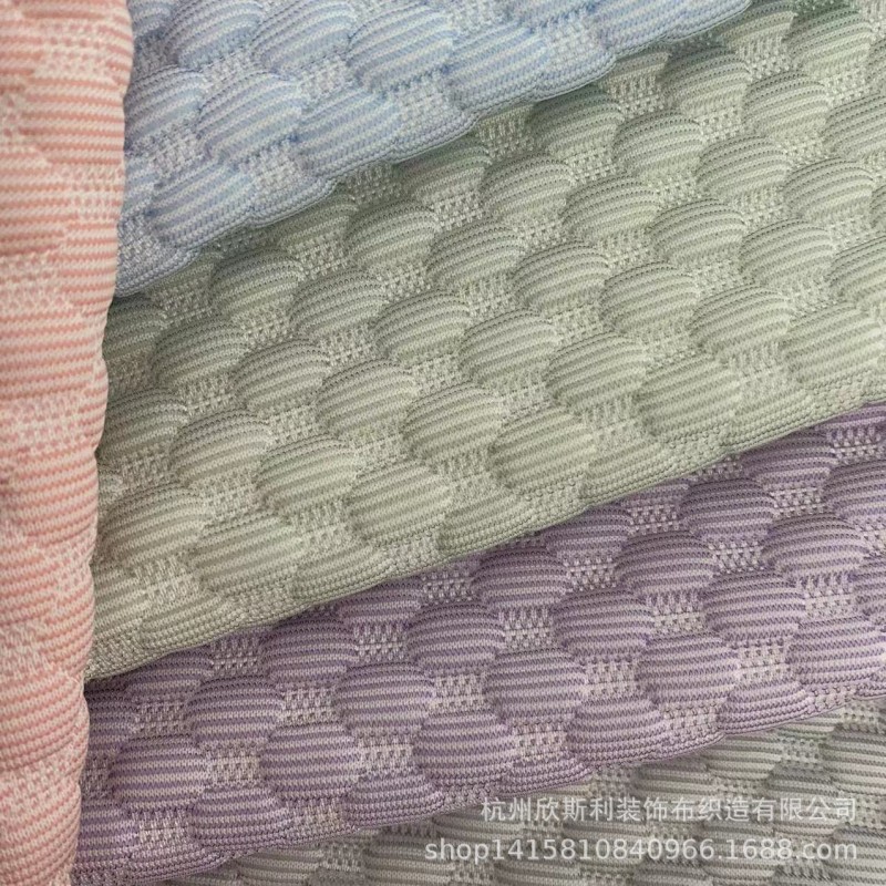 本公司主要生产提花针织布又名空气层:提花针织布具有立体感强,饱满,手感柔软舒适,提升产品档次!一般可用在席梦思床垫、3D床垫、记忆枕、乳胶枕、乳胶床垫、抱枕、靠枕、各类保健枕、拖鞋面料等!本公司产品自产自销,欢迎订购洽谈!