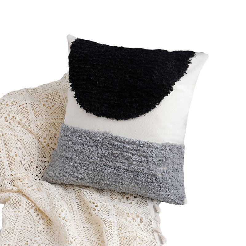 跨境家居方形ins装饰簇绒靠垫套婚庆帆布条纹文创抱枕套可拆卸
