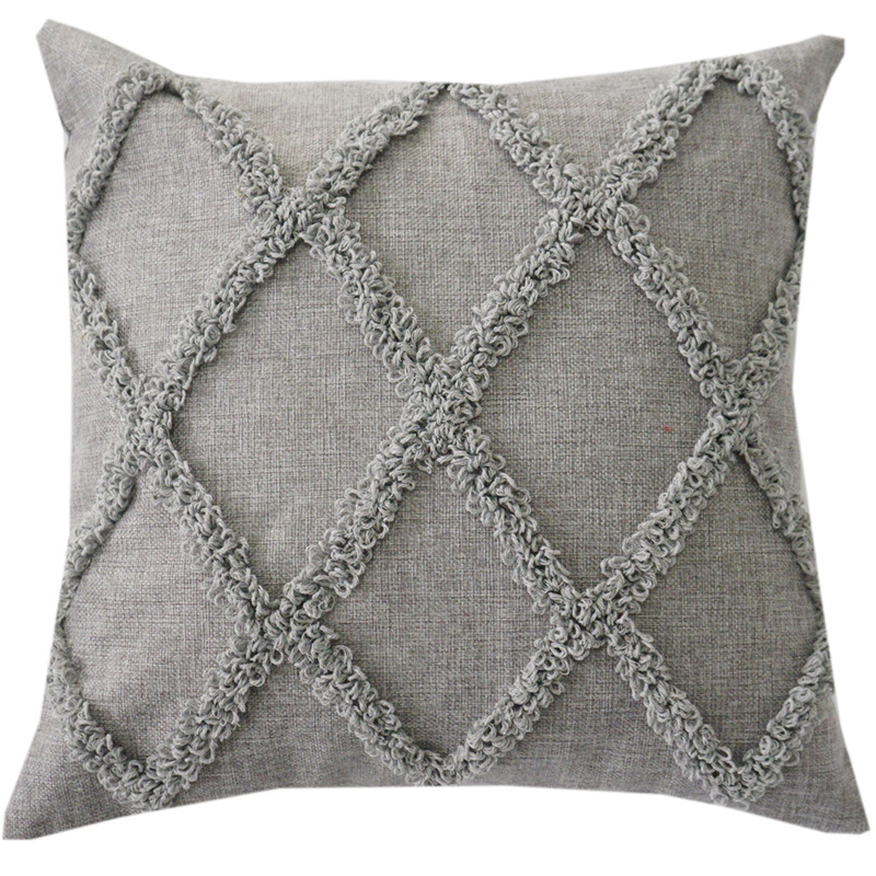 家居手工编织靠垫套方形沙发坐垫粗线圈绒刺绣靠背涤纶簇绒抱枕套