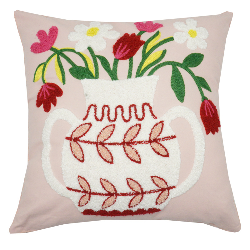 创意北欧ins小雏菊太阳花色抱枕套莫兰迪全棉毛巾绣花朵靠垫垫枕