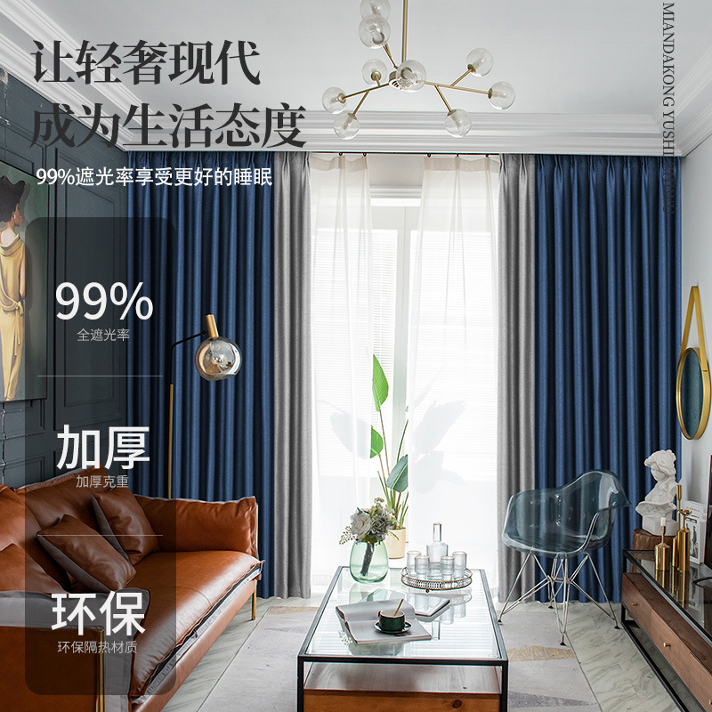 现代简约全遮光纯色双面麻窗帘成品批发隔热客厅卧室酒店工程面料