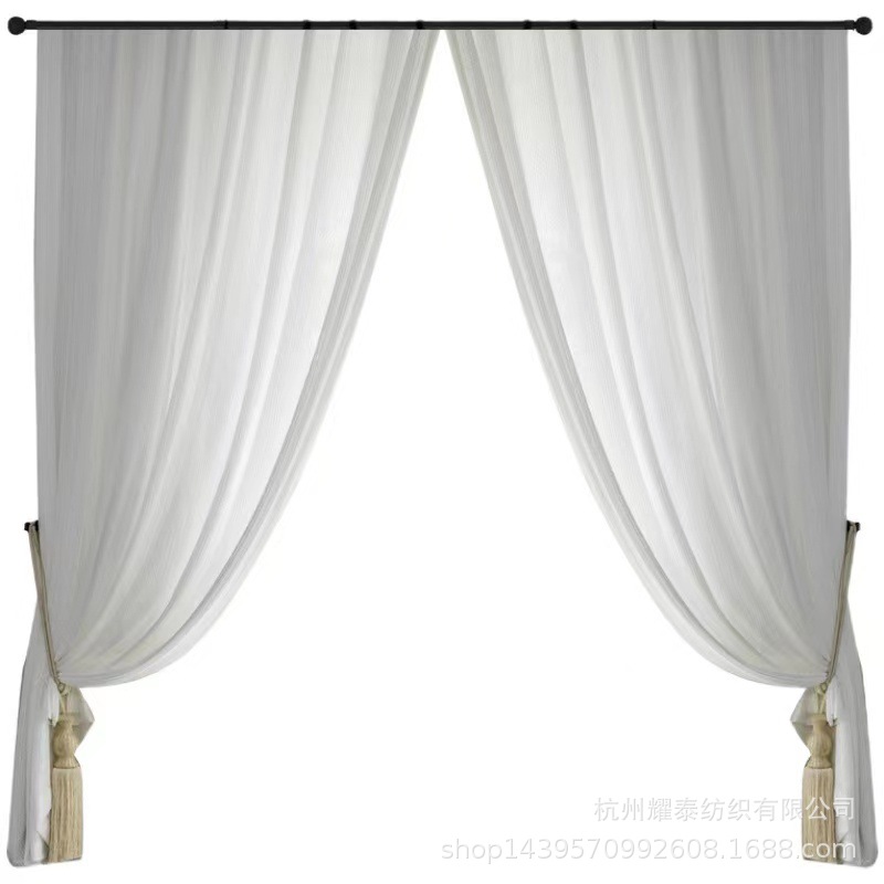 跨境防晒隔热纱帘现代简约透光不透人镜面纱窗纱阳台卧室遮阳窗帘