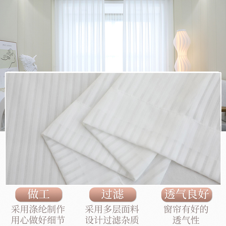竖百叶纱梦幻帘布料批发卧室飘窗白纱窗帘窗纱透光不透人简约纱帘