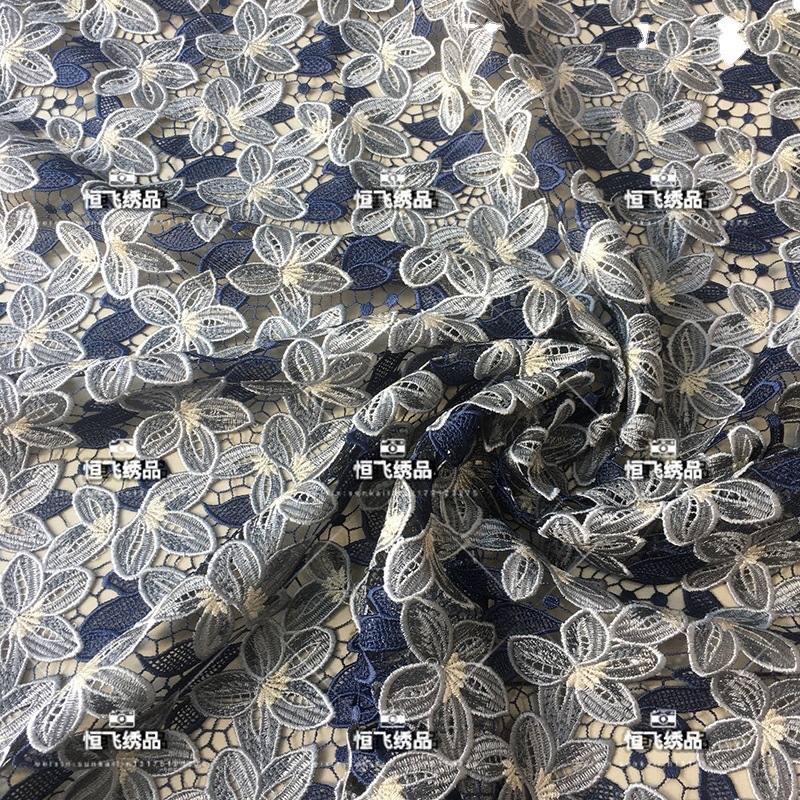 春秋季多色水溶涤丝线植物珊瑚花花型刺绣衣裙时装等绣花面料批发