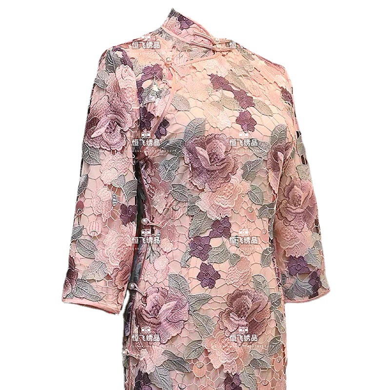 直销精细花水溶蕾丝绣花半身裙长裙复古风服装绣花面料批发