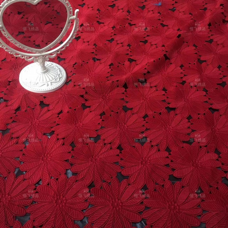 秋冬爆款显白大红立体镂空向日葵花型刺绣女装连衣裙等绣花面料