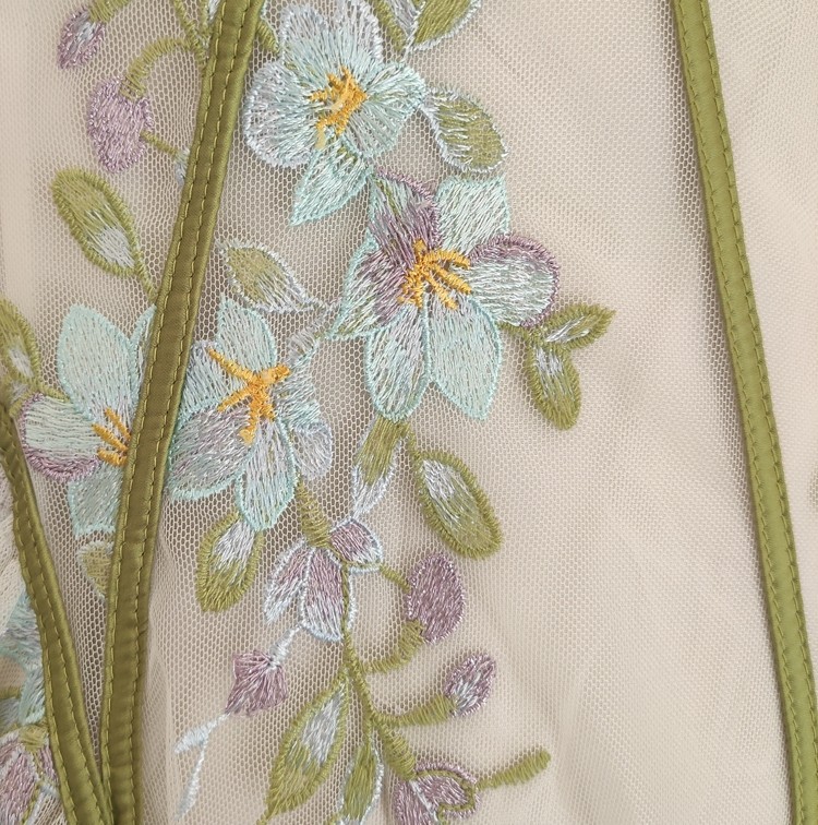 法式高级感刺绣鱼骨碎花吊带连衣裙感蕾丝长裙绣花网纱面料
