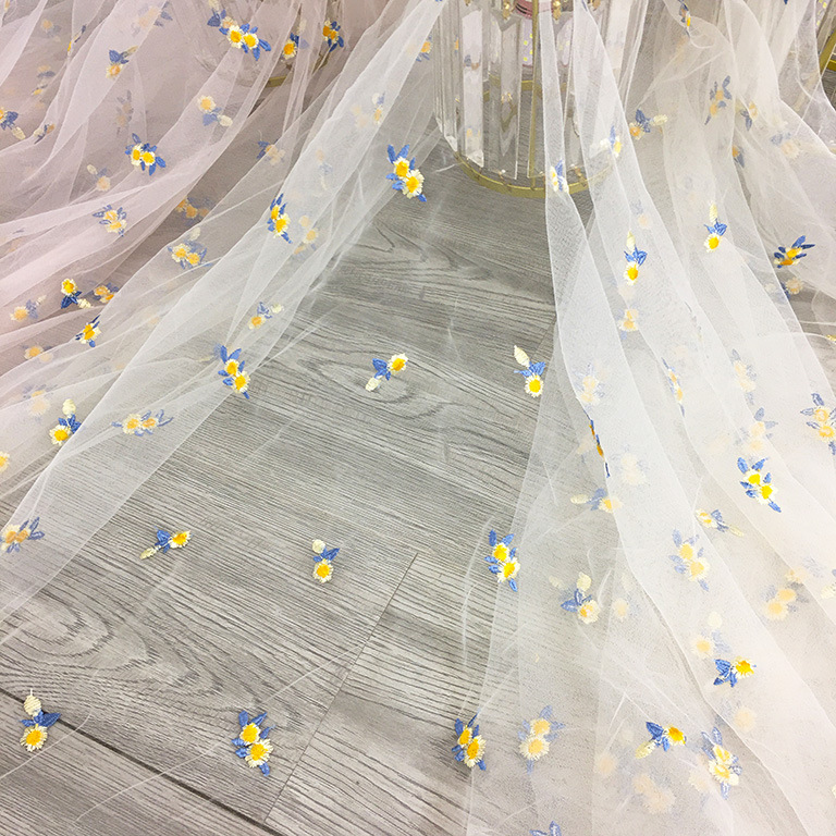 田园简约网纱女童女裙服装绣花面料刺绣布料
