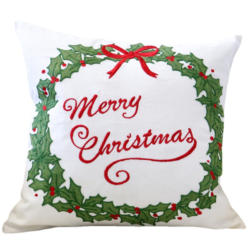 跨境专供 圣诞节刺绣抱枕套 圣诞节装饰家居绣花沙发靠垫套