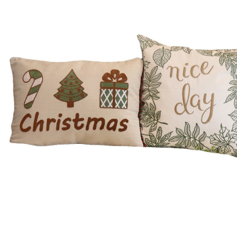 跨境专供-亚马逊热销 新款圣诞绣花装饰抱枕 亚麻刺绣圣诞靠垫套