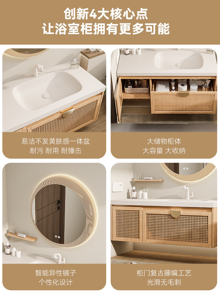 杜邦可丽耐一体盆藤编原木诧寂风浴室柜组合卫生间洗漱台洗手脸盆