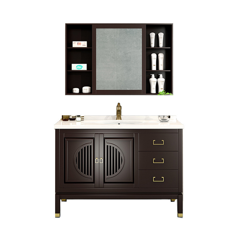 卫浴柜现代新中式浴室移门风水镜柜组合洗手池洗脸盆柜实木洗漱台