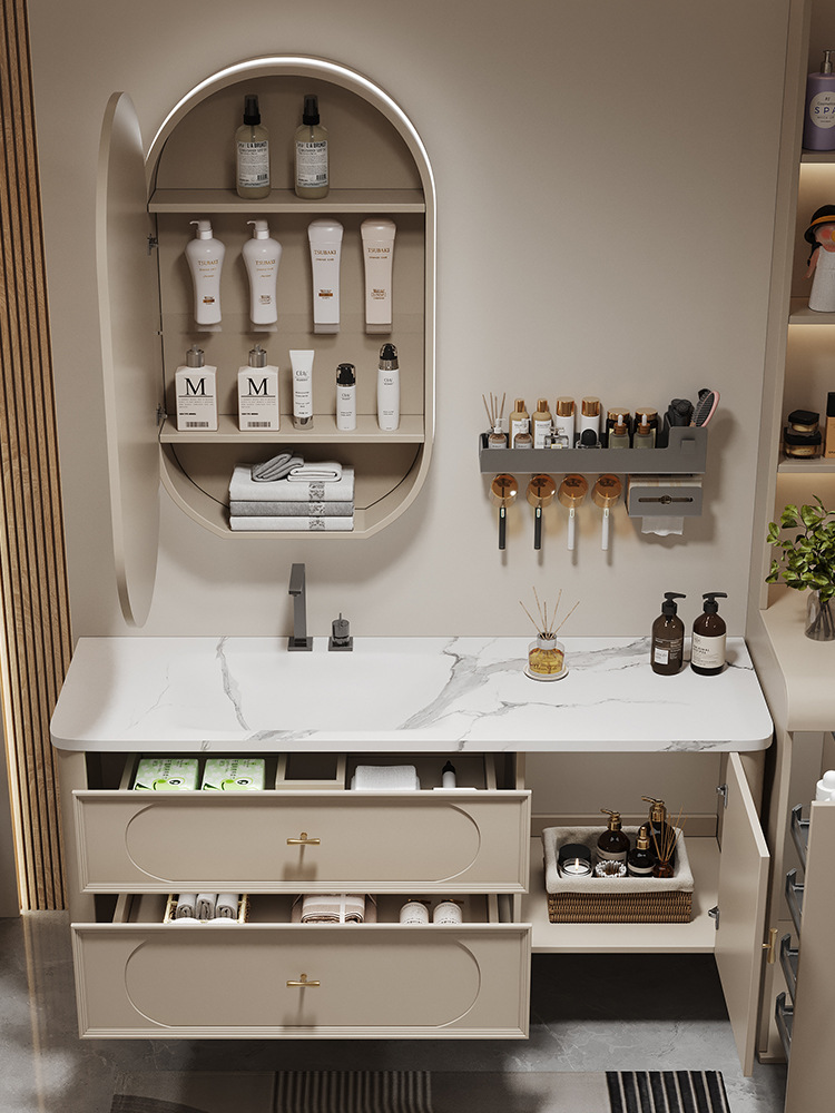 奶油风岩板热弯可丽耐一体盆浴室柜组合卫生间洗漱台洗脸盆洗手盆