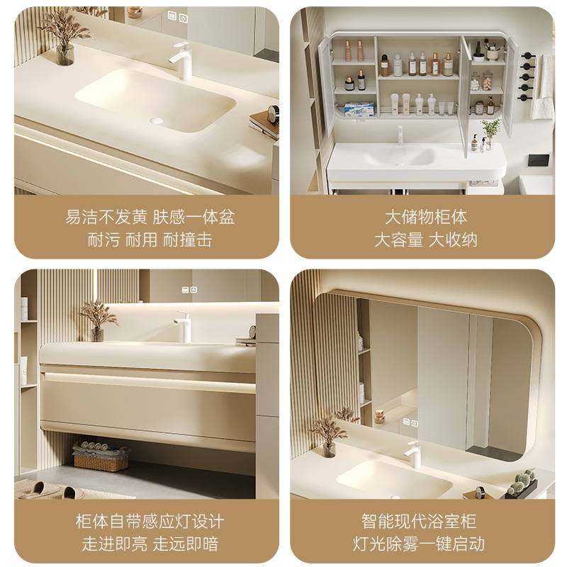 杜邦可丽耐一体盆浴室柜组合简约洗手洗脸盆池卫生间奶油风洗漱台