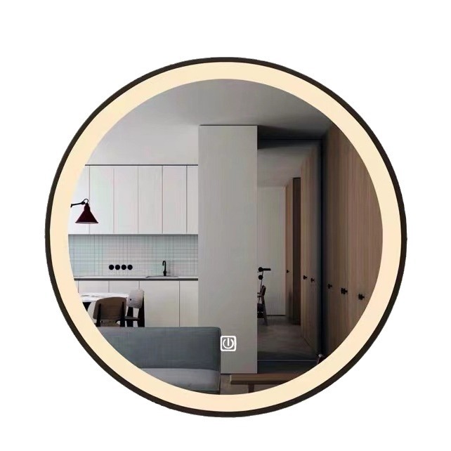 铁艺LED灯镜除雾人体感应智能镜 挂墙圆镜 LED浴室带灯镜子化妆镜