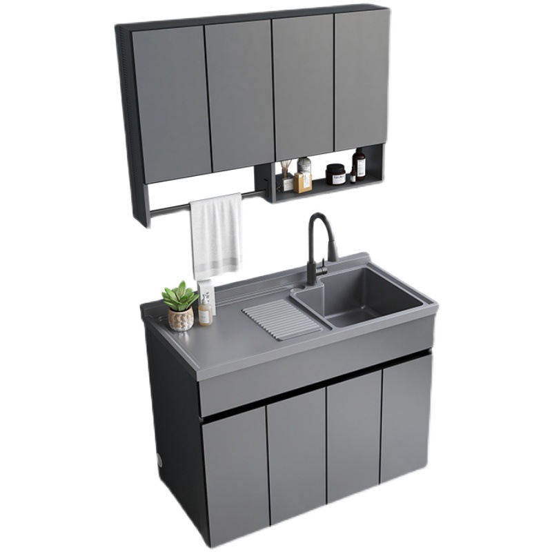 现代简约洗衣机柜阳台柜洗衣槽带搓衣板太空铝柜带毛巾杆组合柜