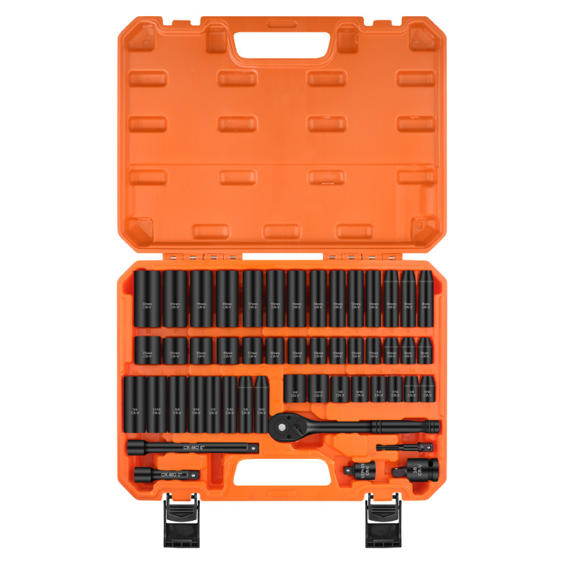 50件套3/8公英制加长中飞套筒 六角风炮套筒头棘轮冲击套筒工具48