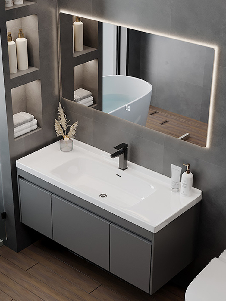 陶瓷一体盆浴室柜简约卫生间洗漱台轻奢智能洗手洗脸盆柜组合卫浴