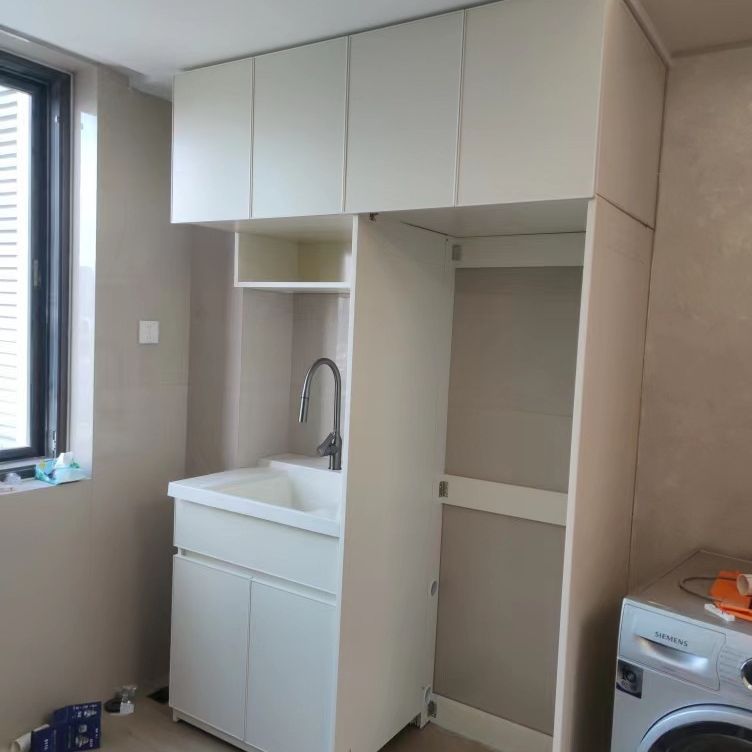 阳台柜洗衣机烘干机叠放柜一体组合柜洗衣机柜双机洗衣台切角