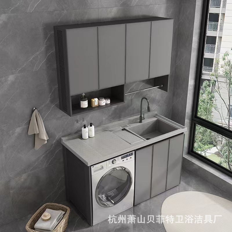 新品花岗石一体台面带搓板阳台洗衣机伴侣柜组合洗衣台切角定做