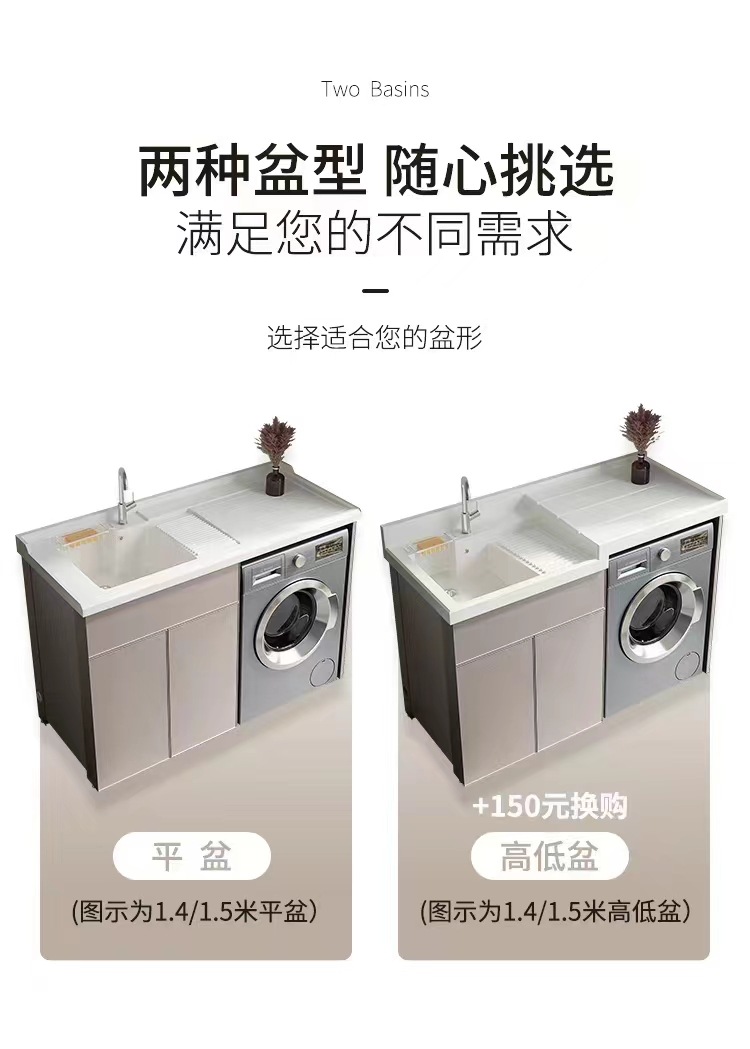 新款卡其色洗衣柜组合一体柜简约带搓板洗衣台池槽脸盆洗衣伴侣