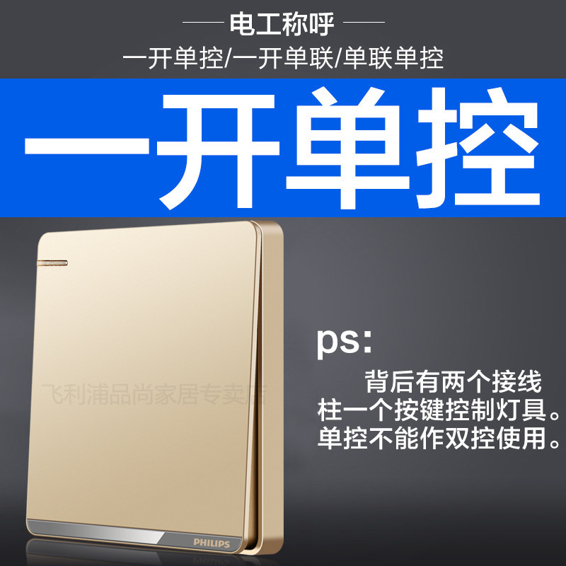 飞利浦开关插座飞悦系列香槟金 墙壁面板 五孔 电脑 一二三四双控