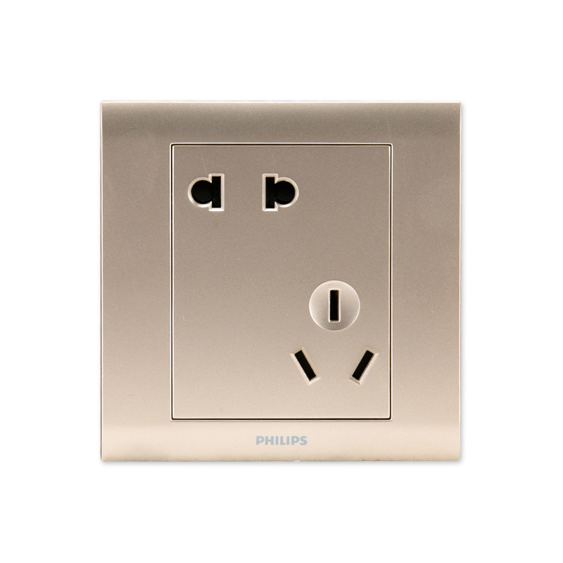 飞利浦开关插座墙壁面板P5系列金色五孔10A二三插座86型开关面板