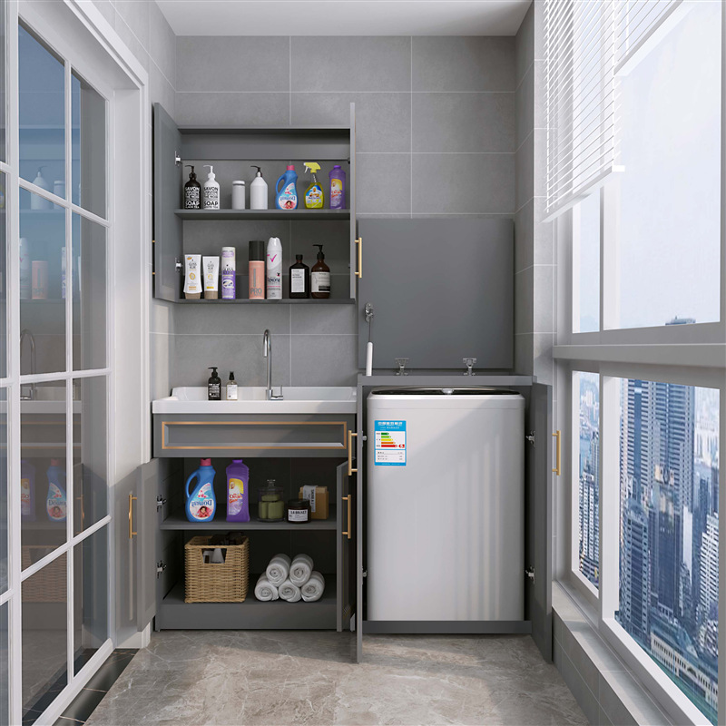 太空铝阳台洗衣柜伴侣组合池槽一体上翻盖波轮洗衣机洗手洗脸盆柜