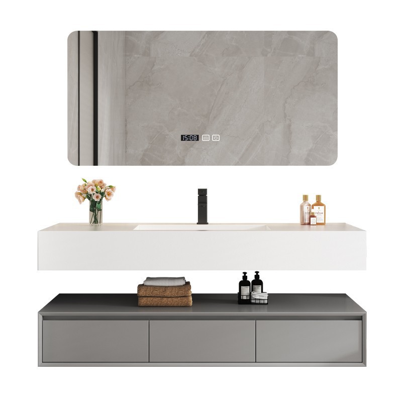 【定制】岩板无缝陶瓷盆一体盆浴室柜组合洗漱洗脸洗手台双盆厂家