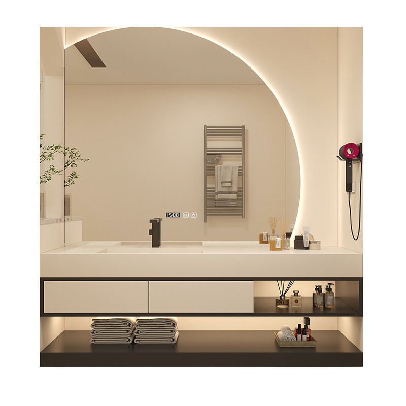 设计师ins半圆镜岩板无缝陶瓷一体盆浴室柜组合现代简约洗漱台池