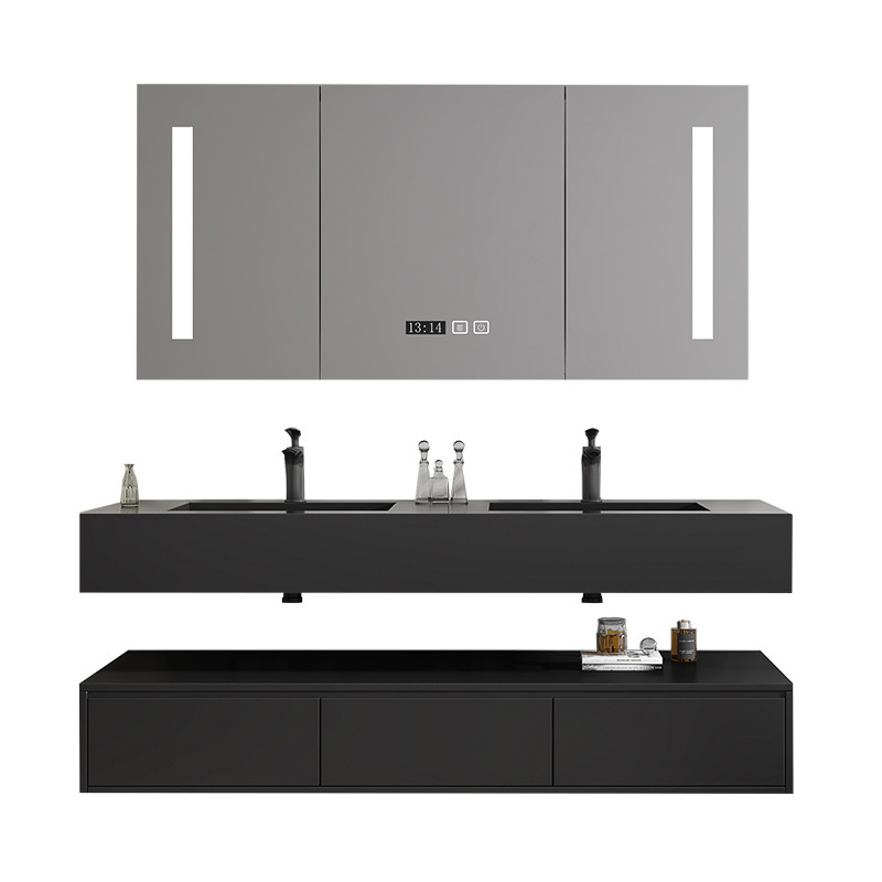 北欧岩板一体盆浴室柜组合实木智能镜柜卫生间洗漱台盆卫浴柜吊柜