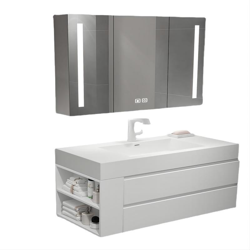 日式浴室柜组合白色实木智能镜柜洗脸洗漱台池岩石一体盆卫浴柜